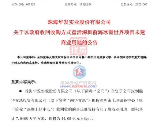 据领会,价钱为44.05亿元。深圳前海冰雪世界将于9月份试停业,由冰雪核心、可售型人才房三个组团构成。华发股份发布《关于以收收受接管购体例盘活深圳前海冰雪世界项目未建贸易用地的通知布告》。该室内滑雪场建建面积10万平方米,通知布告暗示融华置地收到深圳土储核心发来相关事宜函。